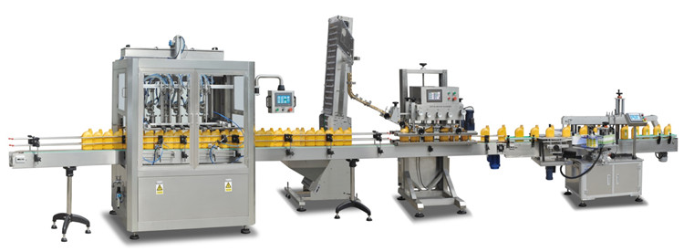 Avtomatik böyük həcmli doldurma maşını: yuvarlaq konveyer xətti (bareldə), qapaq stansiyasını, yanacaqdoldurma məntəqəsini, möhürlənmiş, pnevmatik qapağı, bağlama stansiyası, enerji yığma rulon konveyer xətti, bitmiş barel birləşməsi - dörd barel kodu (2 × 2 metrlik çömçə platforması), enerji sistemi, pnevmatik sistem, ağırlıq sistemi, damcı əleyhinə nasos sistemi, elektrik sistemləri və digər sistemlər.